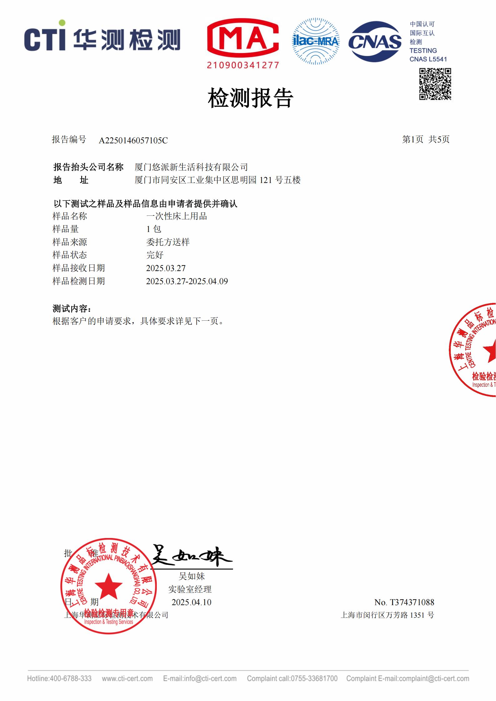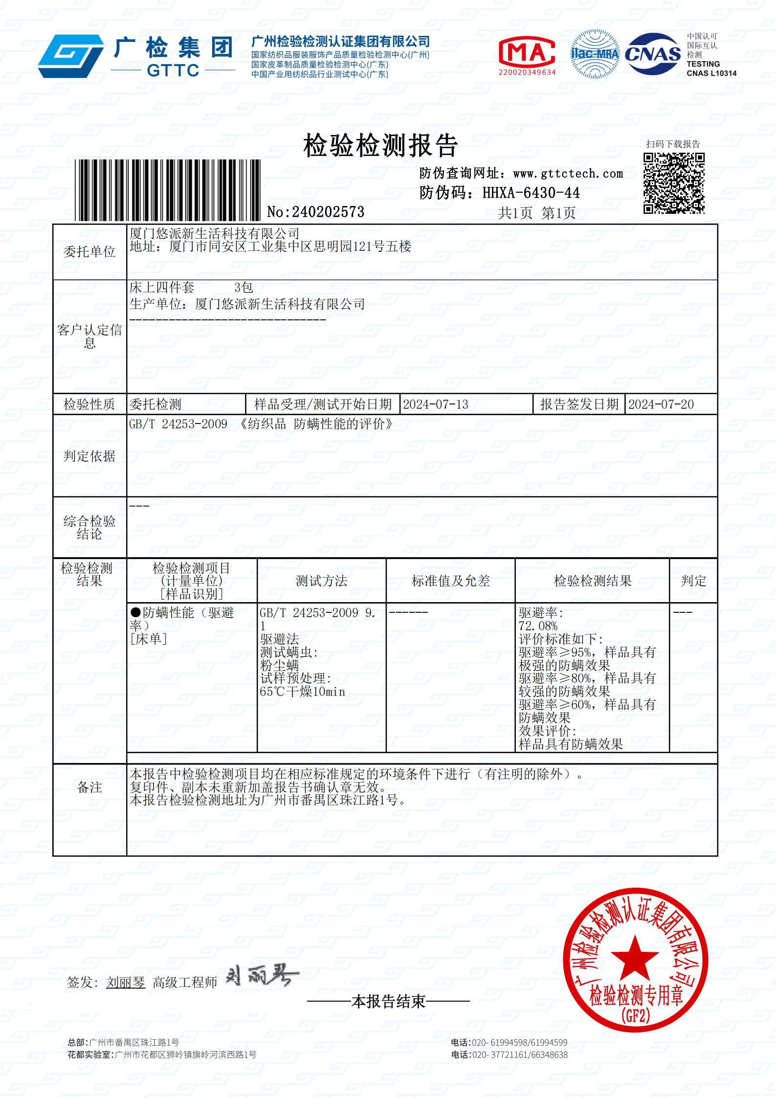 一次性四件套防螨检测